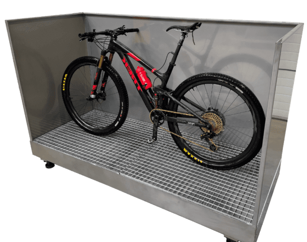 Wytrzymała myjnia rowerowa o pojemności 240 litrów, wykonana z nierdzewnej i ocynkowanej blachy.