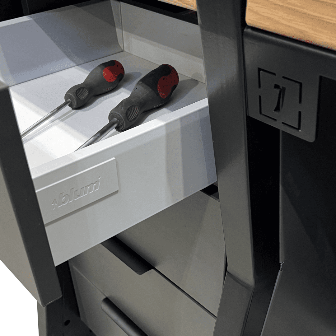 Stanowisko serwisowe to profesjonalne centrum pracy łączące surowość stali z ciepłem naturalnego drewna. Zaprojektowane z myślą o maksymalnej ergonomii, oferuje wodoodporne blaty oraz przemyślaną strefę roboczą, która realnie przyspiesza obsługę zleceń. To mebel, który nie tylko usprawnia pracę serwisu, ale buduje jego prestiżowy wizerunek w oczach klienta.