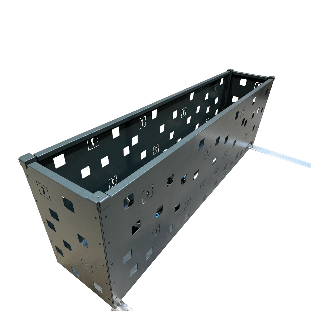 Konstrukcja jest w pełni kompatybilna z systemem szynowym, co umożliwia łatwą zmianę konfiguracji pomieszczenia. Płynna regulacja wysokości poziomów pozwala na optymalne wykorzystanie dostępnej przestrzeni, a trwałe malowanie proszkowe w dowolnym kolorze RAL gwarantuje estetykę na lata.